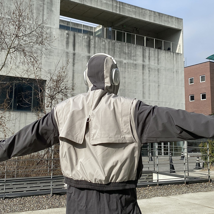 라운드배색후드점퍼